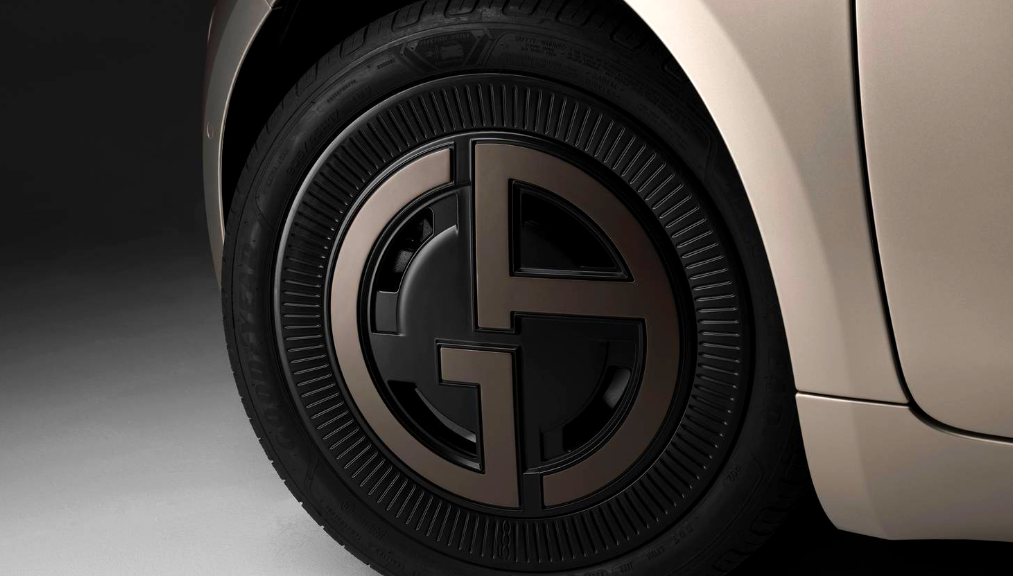 외관부터 차별화된 감성을 자랑합니다. 보통의 전기차에서는 보기 힘든 ‘감성 소재’와 ‘패션 텍스처’가 곳곳에 녹아 있으며, 전체 차체에는 아르마니의 패브릭을 연상시키는 레이저 에칭이 적용되어 있습니다. 일반적인 무광 컬러와는 다르게, 이 에디션만의 그레이-카키 계열의 컬러는 빛에 따라 오묘하게 변하며, 보는 각도에 따라 전혀 다른 분위기를 연출합니다. 조용하면서도 고급스러운 존재감이 느껴지며, 프론트에는 클래식 피아트 엠블럼 대신 'GA' 로고가 삽입되어 아르마니 특유의 정체성을 은은하게 드러냅니다.