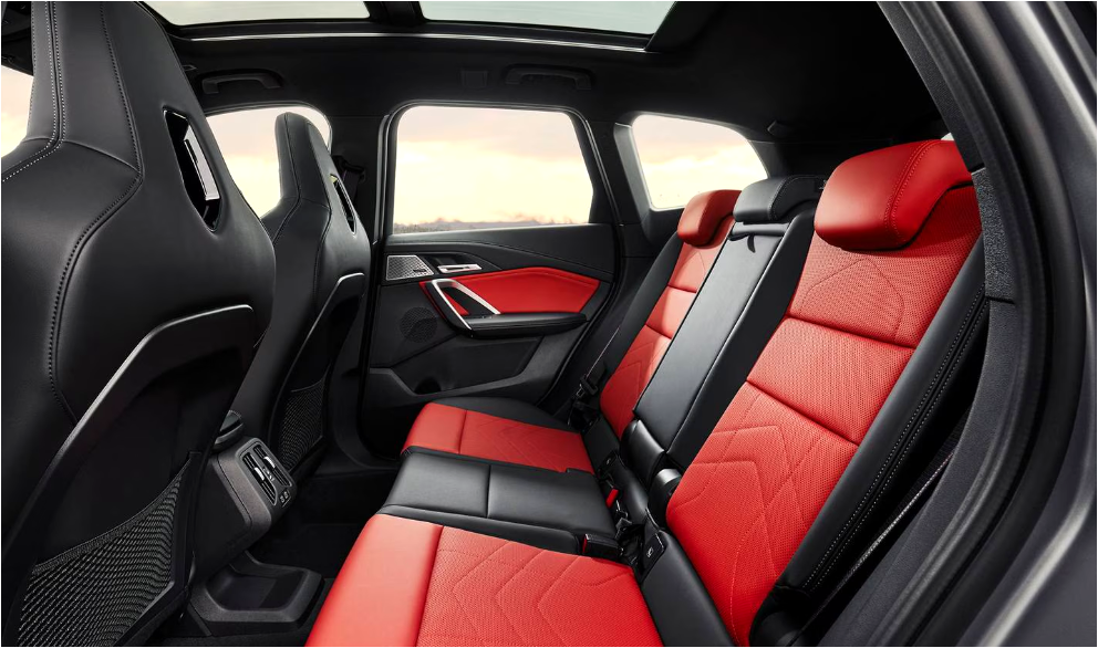 외관은 확실히 기본형 X1과는 다른 분위기를 풍깁니다. 블랙 하이글로스 처리된 대형 키드니 그릴과 공격적인 형상의 M 전용 범퍼는 보는 순간 고성능 모델임을 직감하게 합니다. 측면에는 최대 20인치 크기의 M 알로이 휠이 장착되며, 블루나 레드 색상으로 선택 가능한 M 스포츠 브레이크 캘리퍼가 스포티한 매력을 더해줍니다. 후면부에서는 트윈 듀얼 머플러가 자리해 사운드와 시각적인 존재감을 동시에 전달하고, 스포일러와 리어 디퓨저 역시 공력 성능과 역동적인 디자인을 강화하는 역할을 하고 있습니다. 색상은 알파인 화이트, 브루클린 그레이, 블랙 사파이어 등 BMW 특유의 세련된 톤이 준비되어 있으며, 소비자 개성에 따라 옵션 선택의 폭도 넓습니다.