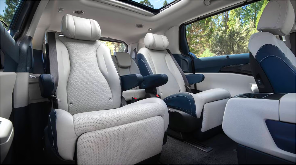 독립식 리클라이닝 시트와 통풍·열선 기능이 기본으로 들어가며, 팔걸이와 레그레스트가 포함된 구조는 마치 비즈니스석에 앉은 듯한 편안함을 제공합니다.