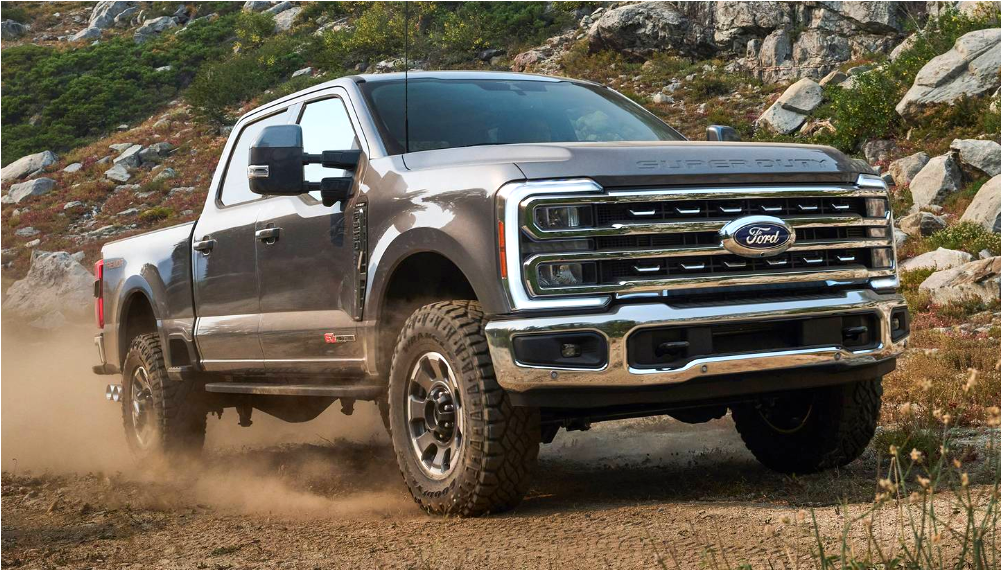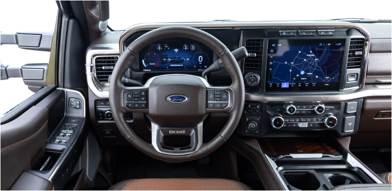 디자인은 ‘슈퍼듀티’라는 이름에 걸맞게 정말 강렬합니다. 전면부를 가득 채운 대형 그릴은 단단함의 상징이고, 헤드램프는 세로형 LED로 마무리되어 최신 포드 디자인 패밀리룩을 따르고 있습니다. 후면부에도 큼지막하게 새겨진 SUPER DUTY 엠블럼이 이 차의 자부심을 그대로 보여줍니다.