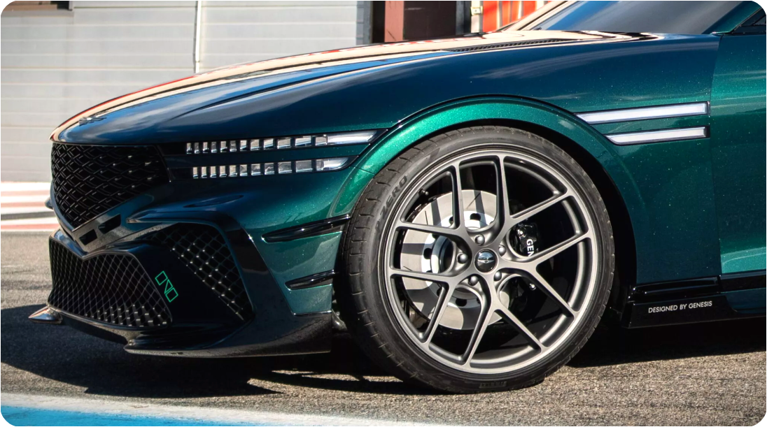 외관은 G90의 고급감 위에, 마그마(MAGMA) 부서가 가미한 공격적이고 스포티한 요소들이 더해졌습니다. 슬림한 그릴, 커다란 흡기구, 넓어진 전륜 펜더, 대형 알로이 휠과 퍼포먼스 타이어는 단순 왜건이 아니라 “달릴 수 있는 왜건”이라는 인상을 줍니다.