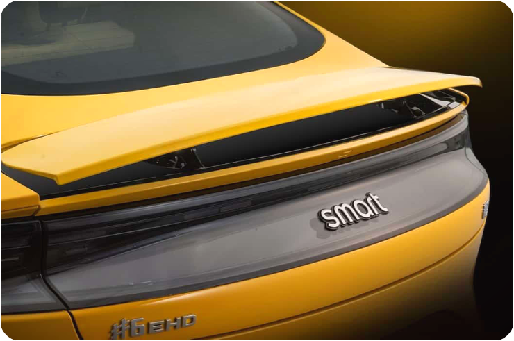 새로운 스마트 세단은 길고 안정적인 차체 비율을 통해 4도어 세단으로서의 공간감을 확보했습니다. 낮고 길게 뻗은 루프라인과 클린한 측면 프로파일은 전기차 특유의 미니멀한 디자인 철학을 반영하는 한편, 세단 특유의 우아함을 더합니다. 이는 스마트가 전통적인 세단 이미지와 미래지향적인 전기차 디자인을 조화시키려는 시도이기도 합니다.