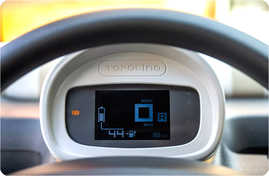동력 성능은 약 8마력 수준의 전기 모터로 구성되어 있습니다. 숫자만 보면 매우 낮아 보일 수 있지만, 토폴리노의 목적은 빠른 가속이나 고속 주행이 아닙니다. 시내 주행과 단거리 이동을 중심으로 설계된 만큼, 불필요한 출력보다는 안정적이고 효율적인 움직임을 중시합니다. 전기 모터의 즉각적인 반응 덕분에 출발과 정체 구간에서는 체감 주행이 부드럽고 자연스럽게 느껴집니다.