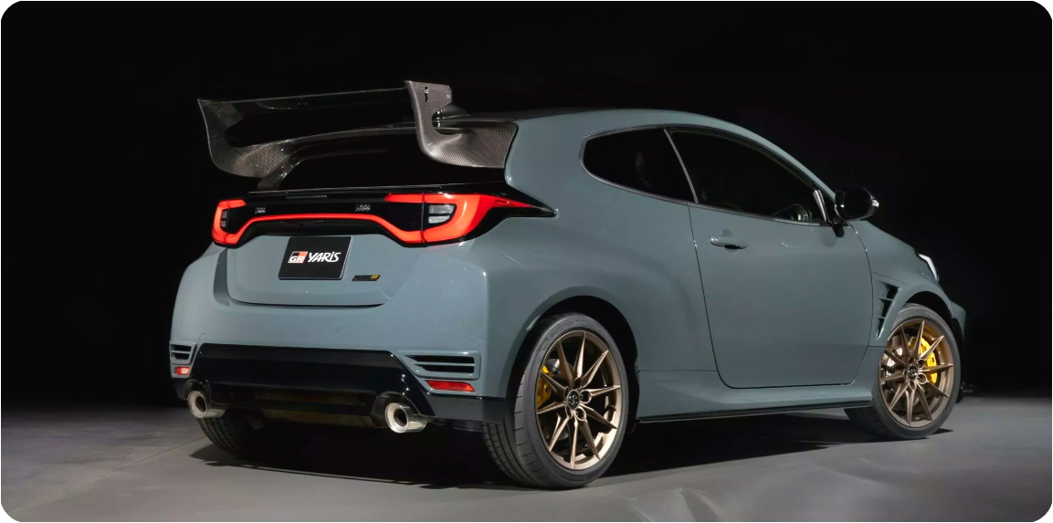 외관 디자인은 공기역학 성능을 최우선으로 고려한 형태로 다듬어졌습니다. 대형 카본 리어 윙과 프런트 스플리터, 카본 보닛, 사이드 스커트는 고속 주행 시 차체 안정성을 극대화하며, 기존 GR 야리스보다 훨씬 공격적인 인상을 줍니다. 여기에 전용 컬러와 경량 휠, 대형 브레이크 시스템이 더해져 시각적 완성도와 성능적 신뢰도를 동시에 끌어올렸습니다.