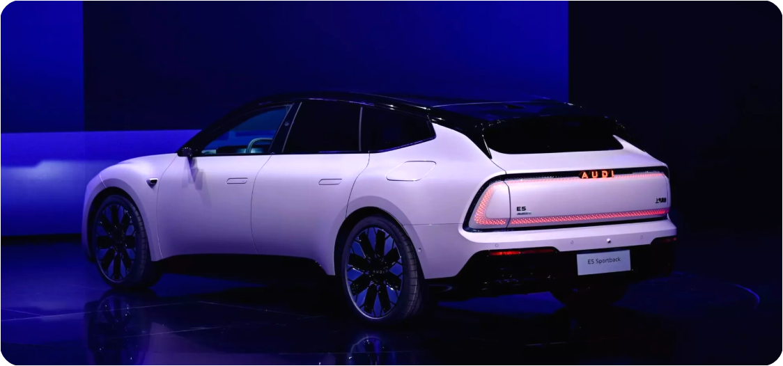 E5 스포트백은 기존 아우디 모델과는 전혀 다른 성격을 지닌 차량입니다. 전통적인 네 개의 링 엠블럼 대신, ‘AUDI’라는 대형 레터링을 전면에 배치하며 브랜드 아이덴티티부터 완전히 새롭게 재정립했습니다. 이는 중국 젊은 소비자층의 취향과 디지털 문화에 맞춘 파격적인 변화로, 글로벌 통일 디자인 전략을 과감히 포기한 상징적인 사례로 평가받고 있습니다.