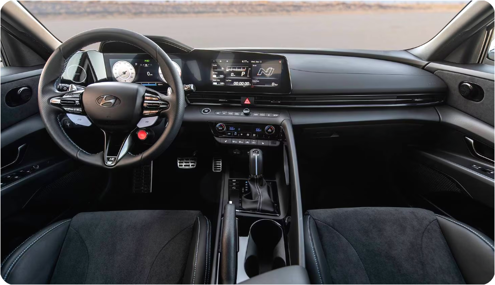 실내 역시 운전자 중심으로 설계되었습니다. N 전용 스포츠 시트와 전용 스티어링 휠이 적용되며 디지털 계기판에서는 다양한 주행 정보를 확인할 수 있습니다. 또한 주행 모드 변경을 통해 차량의 성격을 크게 바꿀 수 있는 것도 특징입니다.